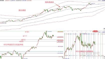 赢家江恩三步分析法1月23日大盘解读: 1、趋势:指数日线突破强势通道线,收盘并处于线上,此线成为当前支撑,依据规则站稳一线看高一线,失守一线看低一线,近期观察此线得失。 2、空间:支撑4117点、4072点,压力4185点。 3 详情