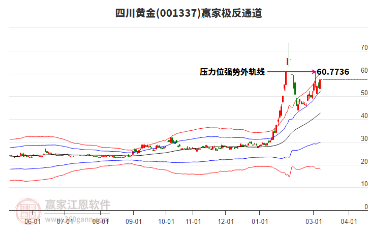 今日四川黄金001337最高价62.8挑战了赢家极反通道工具上方红色外轨线,受到上方红色外轨线强力压制,最终收盘停留在在上方红色外轨线与蓝色外轨线上方的超强通道区域。四川黄金001337近10个交易日 详情