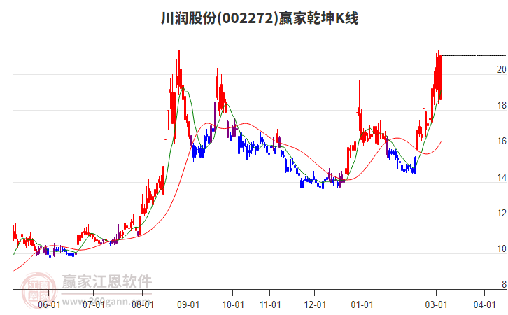川润股份今日拉板涨停,经过江恩空间价格关键支撑,趋势快速拉起!川润股份处于赢家江恩多头主线形态,短期江恩底分型上涨延续中出现重心下移形态,根据赢家江恩工具五星来看,今日星级评定为5星,与昨日相比增加1 详情