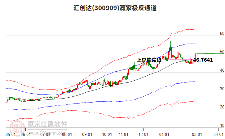 当天汇创达最高价57.0挑战了赢家极反通道工具蓝色外轨线,受到蓝色外轨线强力压制,最终收盘停留在在蓝色外轨线与生命线上方的强势通道区域。汇创达近10个交易日涨幅23.15%。 详情