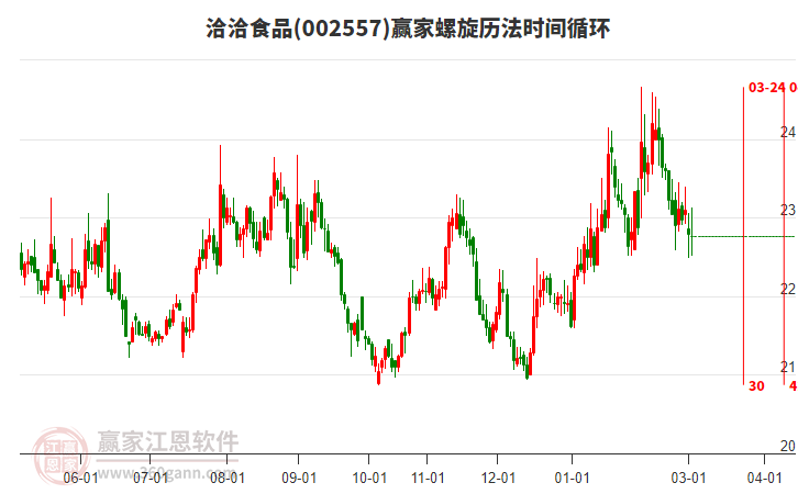 002557洽洽食品目前低开,相比昨日微跌0.13%,目前自前期高点24.66,到现在22.77,已经下跌1.89元,下跌幅度8.3%,经历了15日,距离前期2026年3月2日重要低点22.49元差0 详情