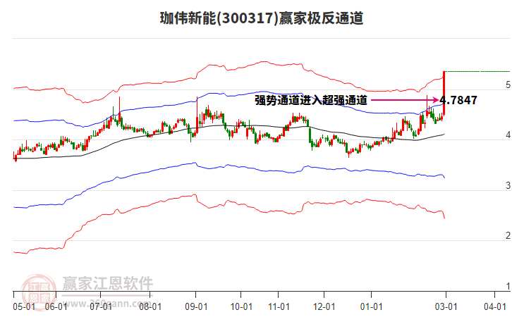 周二300317珈伟新能最高价5.74挑战了赢家极反通道工具上方红色外轨线,受到上方红色外轨线强力压制,最终收盘停留在在上方红色外轨线与蓝色外轨线上方的超强通道区域。300317珈伟新能近10个交易日 详情