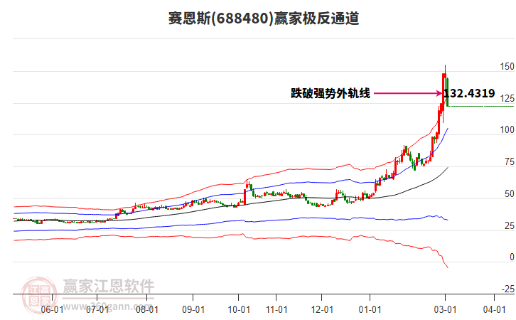 目前赛恩斯最高价138.88上穿了赢家极反通道工具上方红色外轨线,受到上方红色外轨线强力压制,最终收盘停留在在上方红色外轨线与蓝色外轨线上方的超强通道区域。赛恩斯近10个交易日涨幅59.84%。 详情