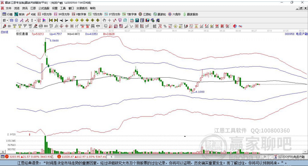 今日000958最高价4.47突破了赢家极反通道工具生命线,受到生命线强力压制,最终收盘停留在在生命线与蓝色下轨线上方的弱势通道区域。000958近10个交易日涨幅2.8%。 详情