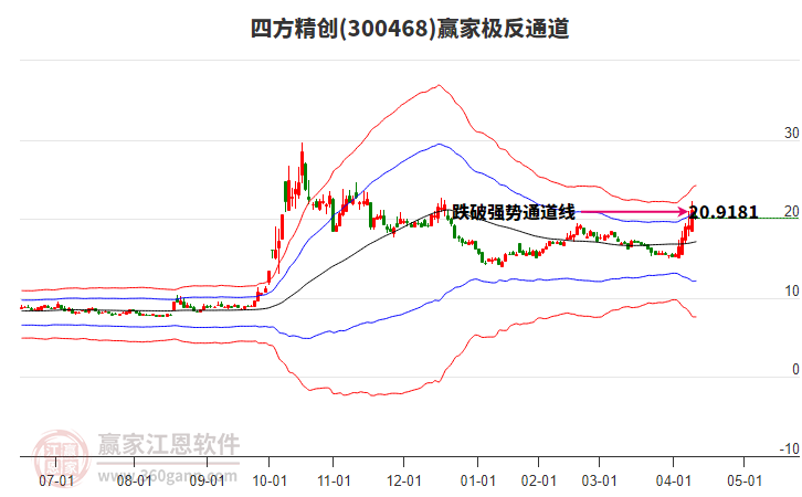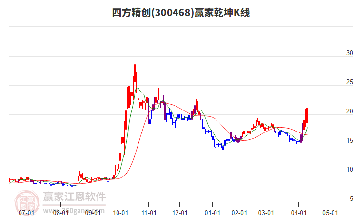 周一四方精创300468最高价21.98上穿了赢家极反通道工具蓝色外轨线,受到蓝色外轨线强力压制,最终收盘停留在在蓝色外轨线与生命线上方的强势通道区域。四方精创300468近10个交易日涨幅33.83 详情