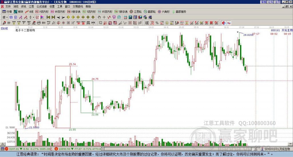 今日600161天坛生物最高价27.52上穿了赢家极反通道工具蓝色外轨线,受到蓝色外轨线强力压制,最终收盘停留在在蓝色外轨线与生命线上方的强势通道区域。600161天坛生物近10个交易日涨幅8.27% 详情